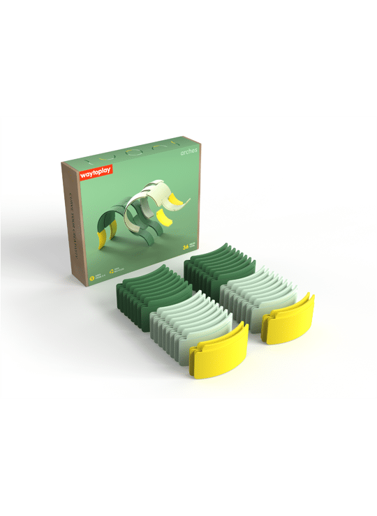 Arches openen een wereld vol fantasie. Of het nu gaat om tunnels, torens, racebanen of fantasiedieren, er is geen grens aan wat je kunt maken. Met slechts één vorm verzin je keer op keer nieuwe verhalen, bouwwerken en spellen.
