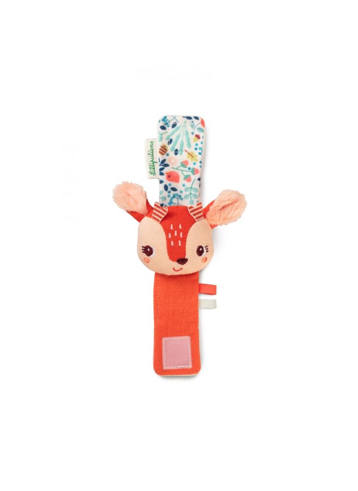 Stella het hertje is opgewekt en dynamisch van aard, toch houdt ze nu en dan ook van rustige en tedere momenten. Deze momenten wilt ze graag met uw kleintje delen door makkelijk rond zijn pols of enkel aan te brengen door middel van de klittenband. Deze rammelaar Stella van organisch katoen stimuleert de zintuigen van peuters, bij elke beweging, dankzij de zachte ratelgeluiden en het kreukelpapier.