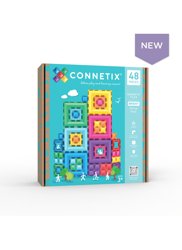 Het 48-delige Bright Portal Pack bevat een mix van transparante, magnetische tegels en bogen die kinderen eindeloos laten experimenteren met bouwen en ontwerpen. Perfect om op een lichtpaneel te gebruiken of combinaties te maken met andere Connetix-sets. De sterke magneten zorgen voor stevige constructies, terwijl kinderen spelenderwijs hun creativiteit en ruimtelijk inzicht ontwikkelen.