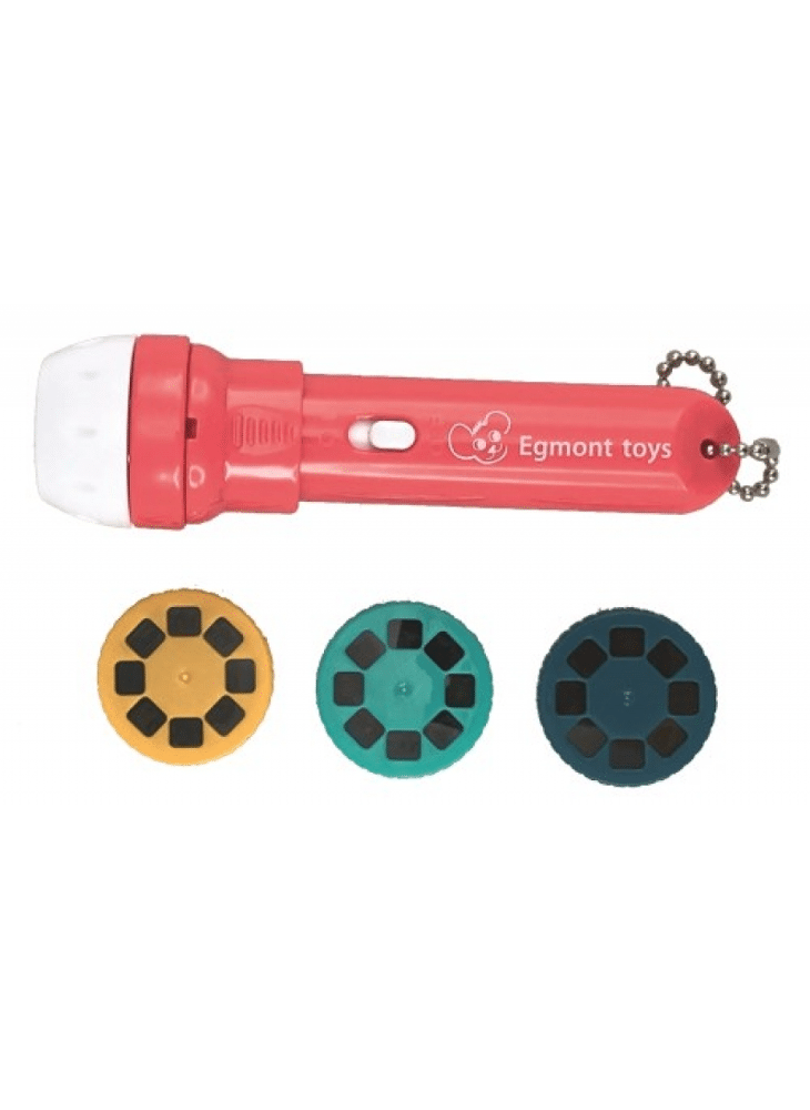 Een magische zaklamp die beelden projecteert! Enthousiaste reacties gegarandeerd. 3 kleine schijfjes met 24 beelden projecteren de wondere wereld van Egmont toys op muren of plafond… Ontdek de wereld van Sofie, de beroepen en het handpoppen circus.