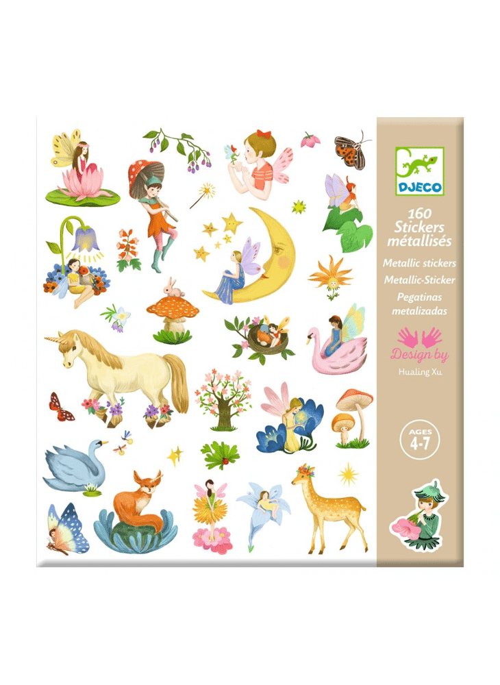 Een mapje met 160 metallic stickers over het thema een fantasiewereld. Kabouters, elfjes, eenhoorns en bosgeesten... Welkom in een fantasiewereld. Het kind plakt de talloze stickers naar wens om zelf taferelen te maken of gebruikt ze om dingen te versieren!