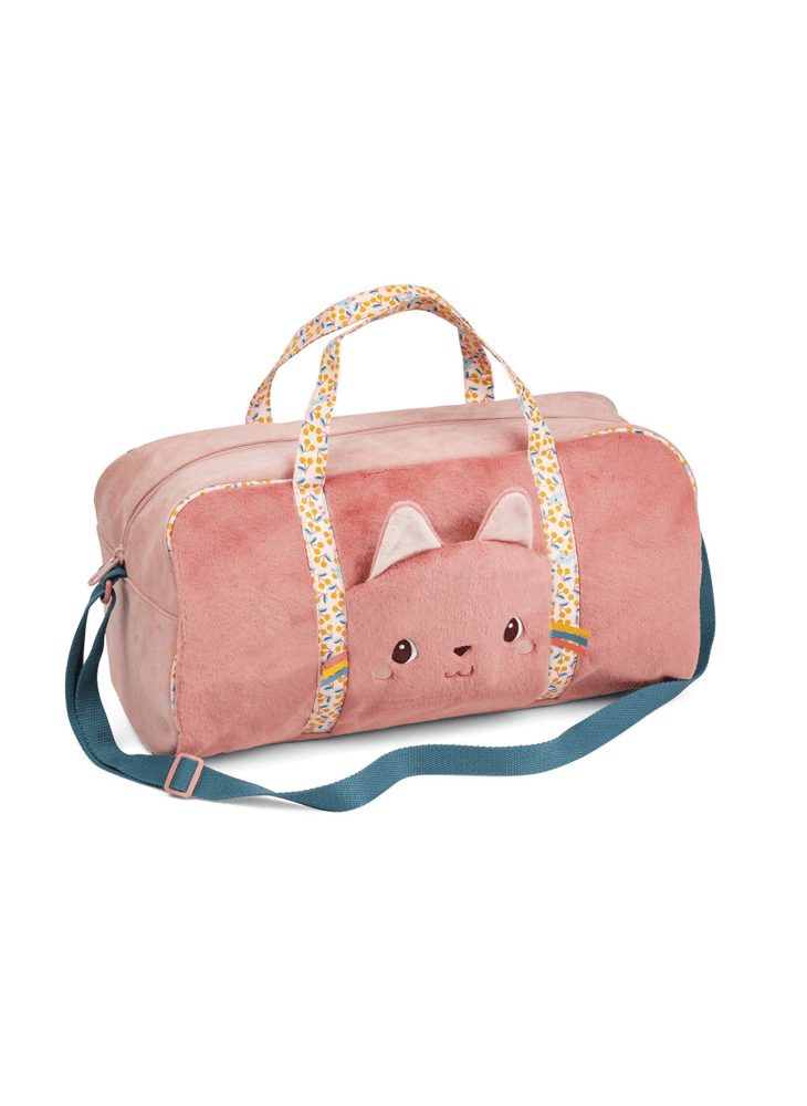 De weekendtas Jeanne the Cat is de ideale metgezel om de kleintjes kennis te laten maken met de vreugde van avontuur. Vanaf 2 jaar zal deze weekendtas voor kinderen in de smaak vallen door de zachtroze kleur en het borduursel met de tekst "Jeanne de kat". De ondeugende knuffel stelt je kindje gerust tijdens zijn of haar eerste schoolreisje, sportdag, logeerpartijtje bij zijn of haar beste vriendje of vriendinnetje of zelfs bij zijn of haar grootouders. Het is ontworpen als een echte handbagagekoffer en combineert esthetiek en functionaliteit, maar is tegelijkertijd een lichte tas die perfect past op de schouders van de allerkleinsten. Deze reistas is geheel gemaakt van zacht en duurzaam polyester en combineert elegantie met robuustheid. Dankzij de brede ritsopening heeft elk kind snel toegang tot de inhoud. Zo kan elk kind zijn spullen gemakkelijk vinden! Dankzij de verschillende zakken (1 aan de binnen- en 1 aan de buitenkant) is een optimale organisatie gegarandeerd: kleding, dekbedden, boeken en kleine persoonlijke bezittingen vinden allemaal hun eigen plekje. Dit model is ontworpen voor flexibel dragen en is voorzien van twee stevige handvatten en een verstelbare katoenen schouderband. Zo kunt u de tas naar wens in de hand of over de schouder dragen, afhankelijk van de voorkeur en het comfort van uw kindje. Met zijn afmetingen van 45 x 23 x 25 cm voldoet deze kleine reistas aan de handbagagenormen van luchtvaartmaatschappijen en past hij gemakkelijk onder de stoel of in de kofferbak. Gemakkelijk te onderhouden en machinewasbaar op 30°C voor een onberispelijke hygiëne, zelfs na de meest bewogen avonturen. Compatibel met de toilettas Jeanne (ref. 84493), zodat u een bijpassende set kunt samenstellen voor al uw uitstapjes! Of u de tas nu gebruikt als weekendtas voor kinderen of als praktische reistas voor uw eerste uitstapje, de tas Jeanne combineert comfort en bruikbaarheid met een onweerstaanbare charme.