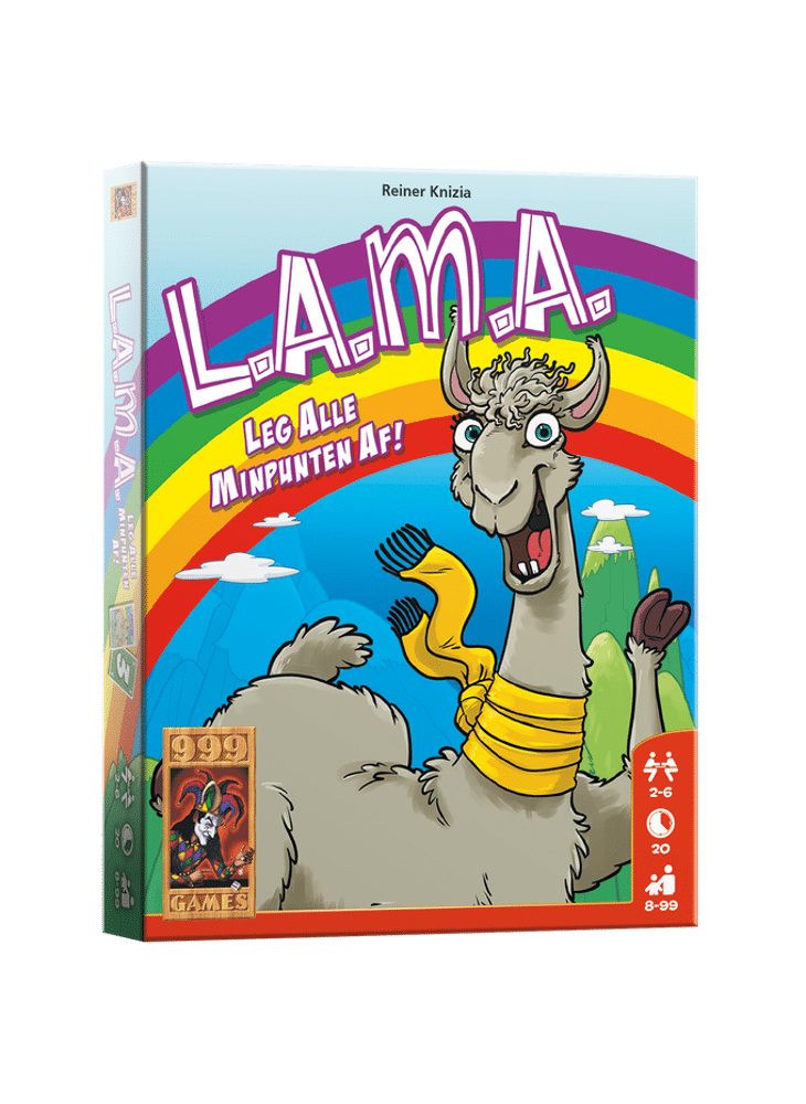 Vlot kaartspel. Het motto van L.A.M.A.: Leg Alle Minpunten Af. Leg steeds een kaart af, anders krijg je er minpuntenfiches voor. Lukt het je om al je kaarten kwijt te raken, dan mag je een fiche teruggeven. En dat mag er één van waarde 1 of van waarde 10 zijn. Wie heeft aan het einde de minste minpunten?