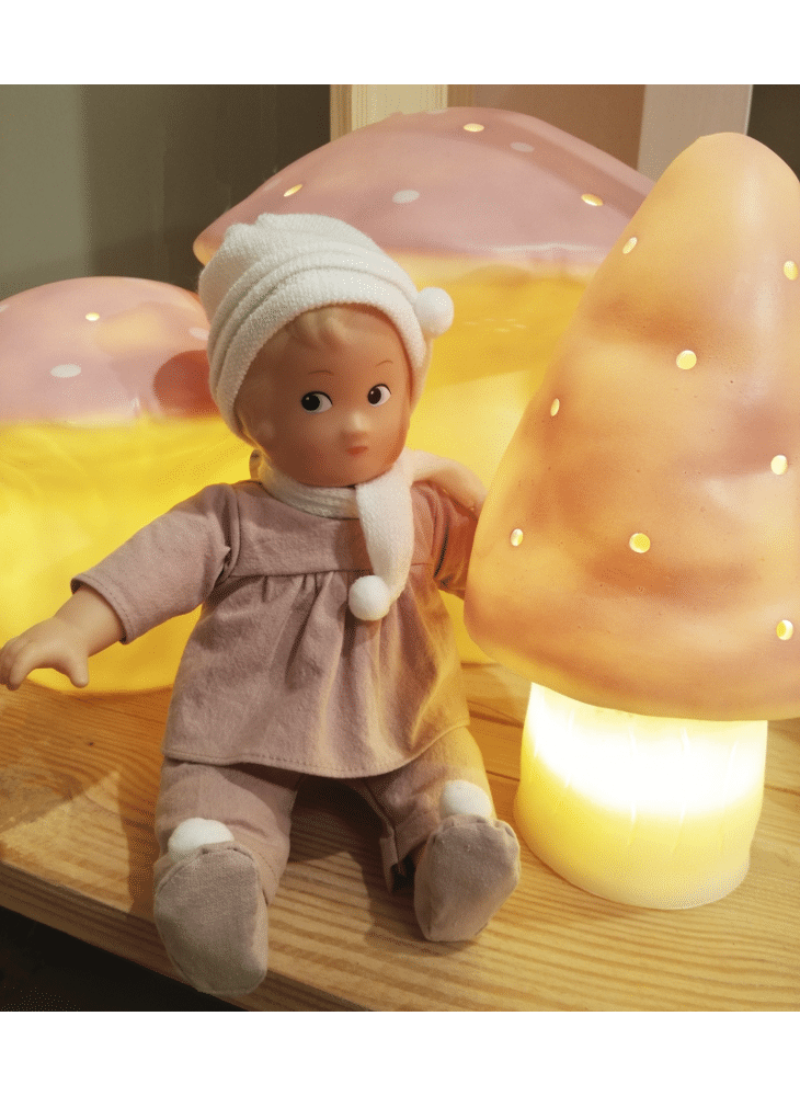 's nachts, projecteert de kleine roze champignon allerlei lichtvlekken overal in de kamer van Celestine. Het lijkt wel magie! Het lampje wordt ambachtelijk gemaakt in Duitsland en is met de hand geverfd. Voor een optimale veiligheid voor de kleintjes uitgerust met een laagspannings LED systeem van 1,5W. Heico