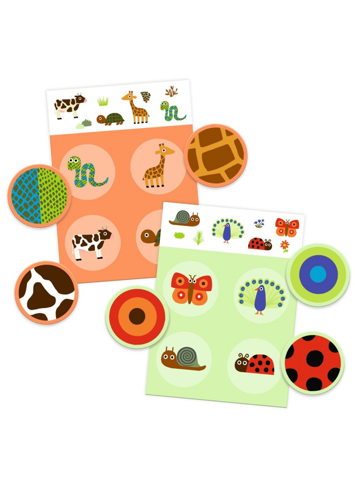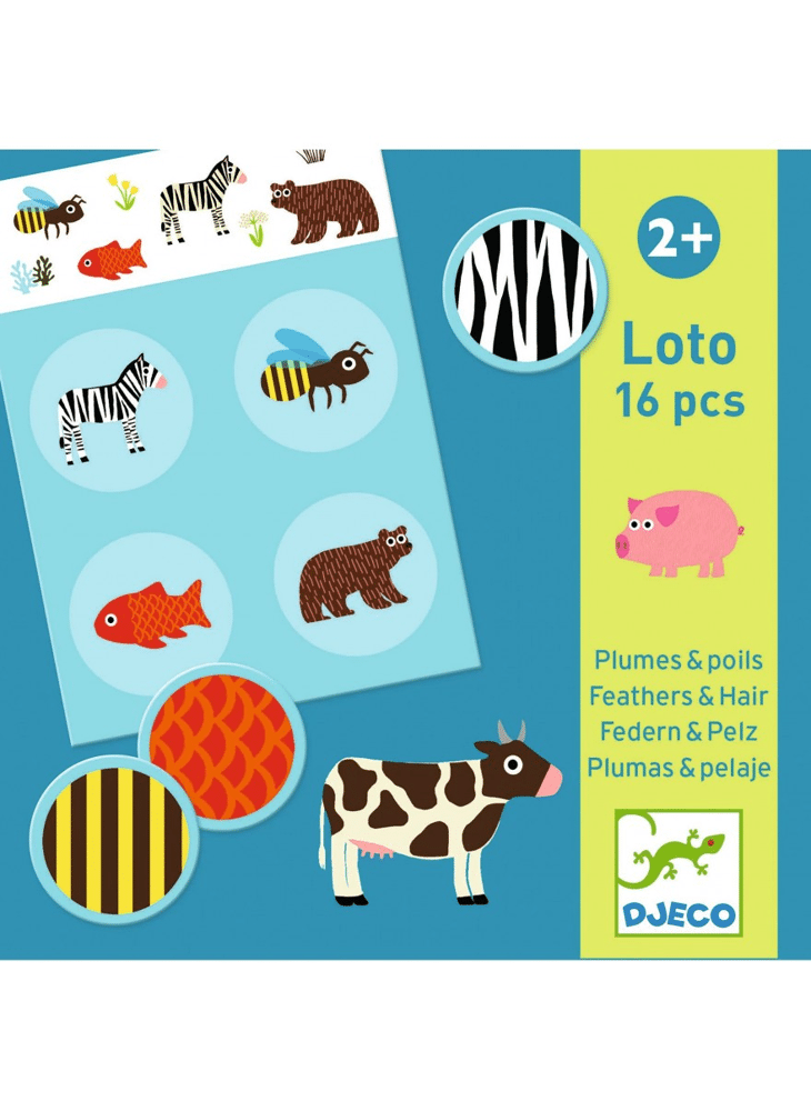 Een lottospel met als thema dieren en hun vacht, veren, enz... Het kind slaat op in zijn/haar geheugen, vindt de stukken die bij het plankje horen. Een combinatie- en geheugenspel, ideaal om spelenderwijs te leren.