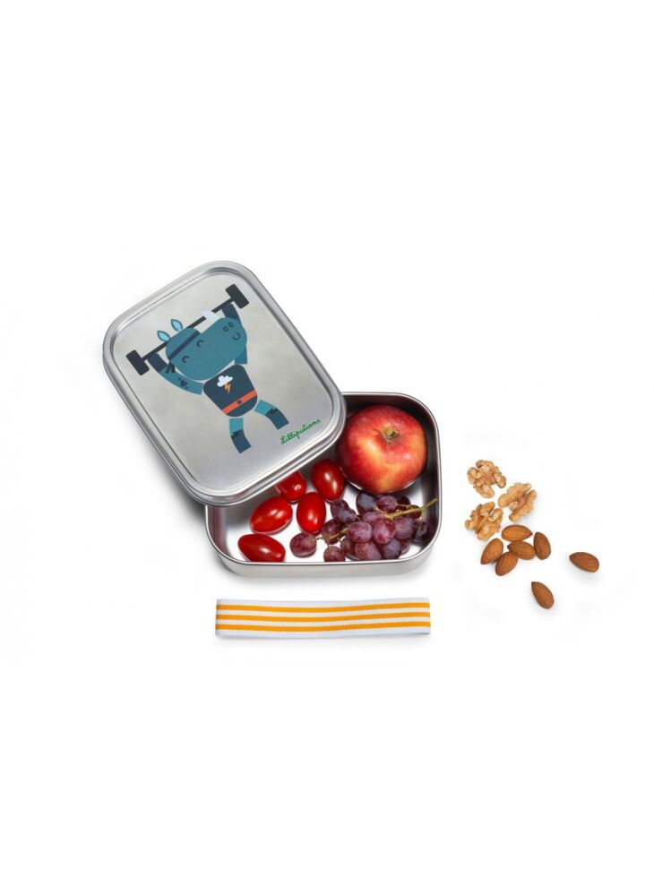 Marius is een superheld die tussen twee heldhaftige optredens snel honger heeft. Deze lunchbox met de beeltenis van Marius de Neushoorn zorgt ervoor dat uw kind zijn maaltijd overal mee naartoe kan nemen, zoals naar school, op schoolreis of op een picknick. De maaltijd van uw kind kan niet in zijn tas terechtkomen dankzij het deksel en het elastiek om alles mooi op zijn plaats te houden Deze rechthoekige lunchbox met een inhoud van 1,5 L is gemaakt van roestvrij staal, waardoor hij zeer stevig en eindeloos herbruikbaar is. Wat beter voor het milieu is. De materialen werden nauwkeurig gekozen en behandeld om smaakoverdracht van het voedsel te vermijden.
