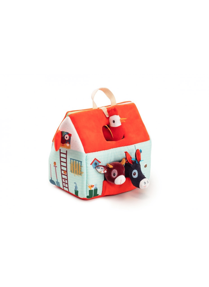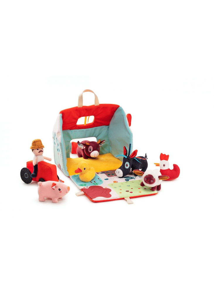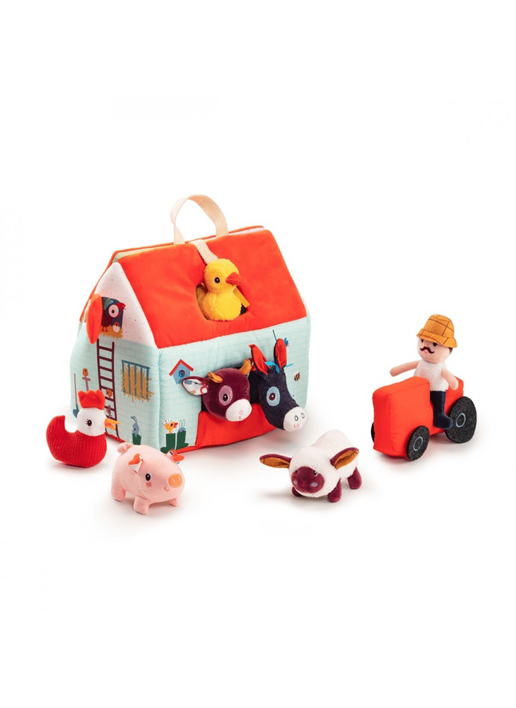 Binnenkort weer op voorraad om uw kinderen te vermaken! De boerderij van Fons is een vermaarde boerderij. Simon het varken, Rosalie de koe, Yvon het schaap, Paulette de kip en Gaspard de eend zullen dit zeker beamen. Deze stoffen boerderij verbergt enkele geheimen. Een van de muren kan open om plaats te bieden aan de verschillende dieren van de boerderij. Uw kind hoeft enkel de woonplaats van elk dier te vinden om ze vast te pakken en te knuffelen. Hun grootte is perfect voor babyhanden. Boer Fons zit op zijn rode tractor om zijn vrolijke bende in het oog te houden. Deze boerderij is eenvoudig overal mee naartoe te nemen met de kleine handgreep op het dak. De hele boerderij is opgevuld met gerecycled polyester en kan in de machine op 30 °C worden gewassen. Boerderijspeelgoed ideaal voor kinderen vanaf 18 maanden oud.