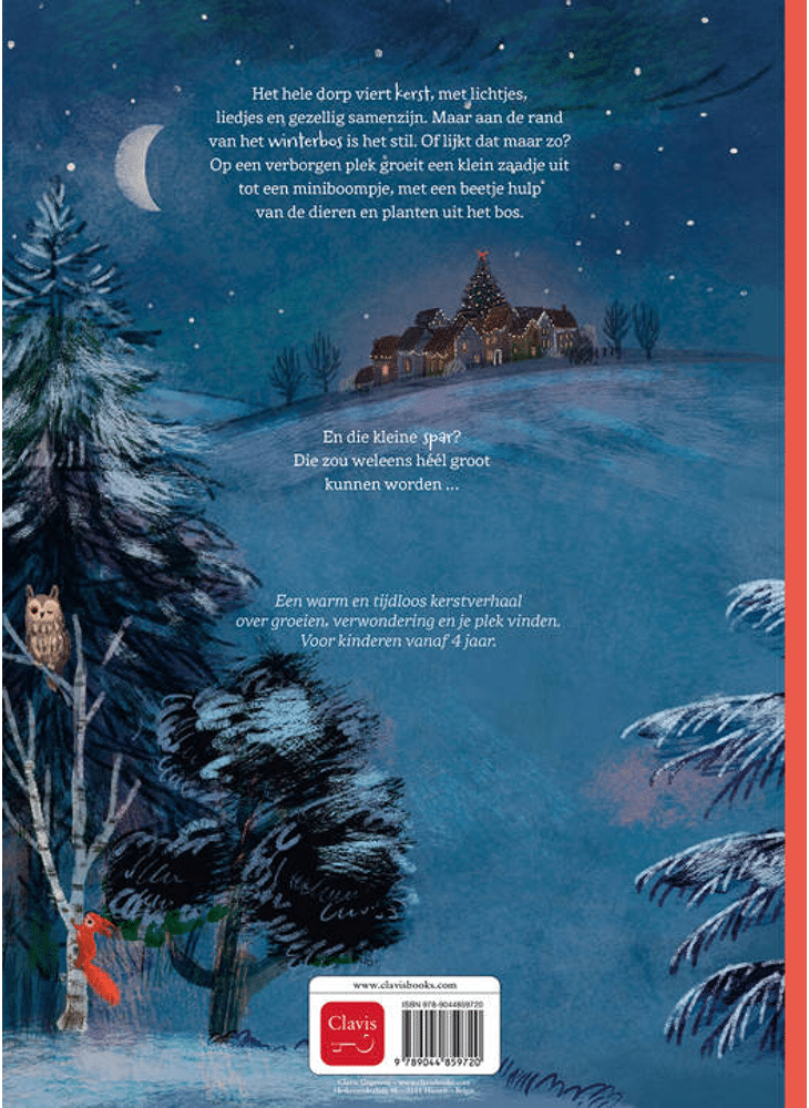 Het hele dorp viert kerst, met lichtjes, liedjes en gezellig samenzijn. Maar aan de rand van het winterbos is het stil. Of lijkt dat maar zo? Op een verborgen plek groeit een klein zaadje uit tot een miniboompje, met een beetje hulp van de dieren en planten uit het bos. En die kleine den? Die zou weleens héél groot kunnen worden … Een warm en tijdloos kerstverhaal over groeien, verwondering en je plek vinden. Voor kinderen vanaf 4 jaar.