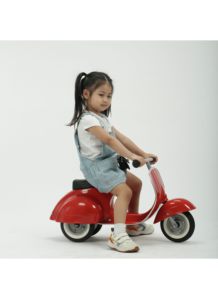3 wheeled, self-propelled ride on toy made of metal. Shaped in the the design of a classic Italian scooter through finest craftsmanship. A timeless, durable and qualitative object of desire for 2-5 year old boys and girls.