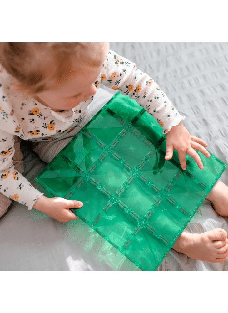 When it comes to magnetic tile play, it’s all about that base! Help children bring to life their inspired ideas and build twice as tall with our 2 piece Base Plate Pack, featuring one blue and one green 30cm x 30cm powerful magnetic building plate!