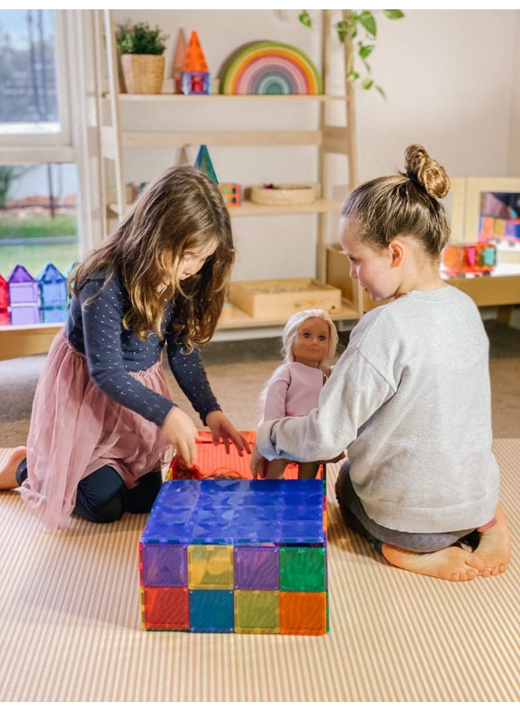 Fostering creativity, imagination and learning through PLAY, this pack provides endless possibilities. As a large building plate with numerous magnet points, Base Plates expand the creative potential of magnetic tile play – supporting the creation of taller towers, sturdier castles and dollhouses, inspiring various forms of play such as fine motor skills and magnetism exploration (attaching tiles to each magnet point), symbolic play (creating ice cream/market stands, tables and chairs for tea parties), small world play (assigning the tiles as grass, ocean or sky) and mazes, just to name a few.