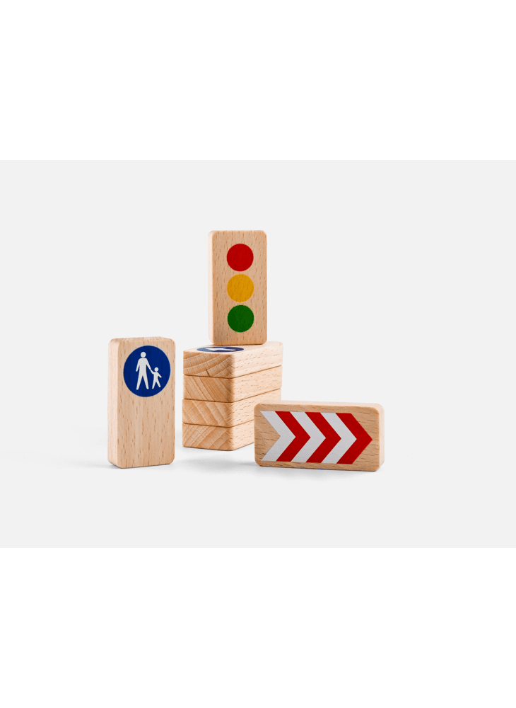 Deze fantastische set bestaat uit 8 houten verkeersborden die de perfecte aanvulling zijn op de flexibele autobaan van Waytoplay Toys. Met deze borden kan uw kind over het verkeer leren terwijl het plezier heeft.