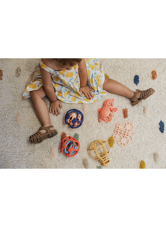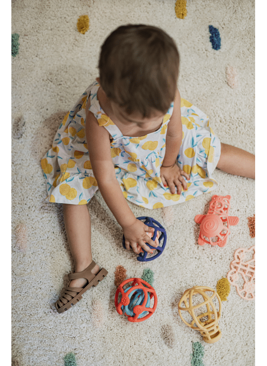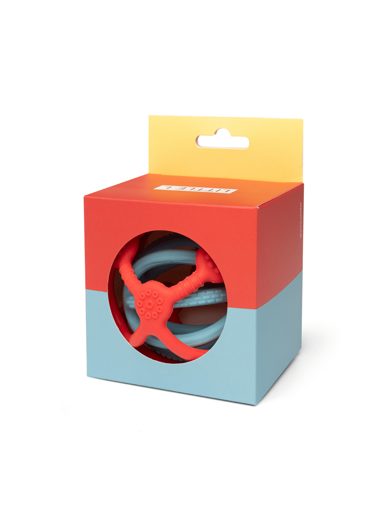 Speciaal ontworpen om baby’s te begeleiden tijdens hun eerste maanden van zintuiglijke ontdekkingen, Little L bijtringen en speeltjes van food-grade siliconen zijn zacht, flexibel en veilig. Hun eenvoudige lijnen maken ze tot multifunctioneel speelgoed en nodigen uit tot vrij spel: constructies, symbolische spellen, binnen of buiten, in bad, maken ruimte voor de creativiteit en fantasie van de kleintjes! Ze zijn gemakkelijk af te wassen in heet water of in de vaatwasser voor uren speelplezier! Sensorische ballen stimuleren zicht, aanraking en zijn veilig om op te kauwen. Ze vervormen en worden gemakkelijk plat voordat ze hun oorspronkelijke vorm weer aannemen. De kleinere bal kan in de grote worden gestoken om motorische vaardigheden, behendigheid en oog-handcoördinatie te ontwikkelen.