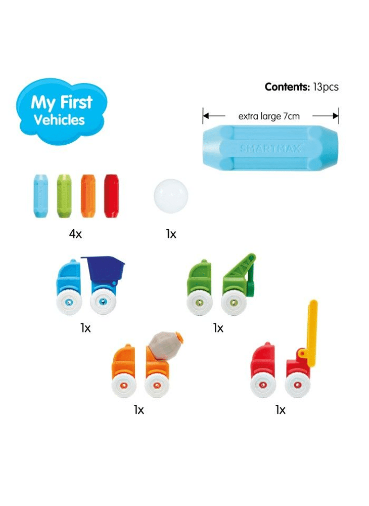 Een brandweerwagen met een tol, een bouwwagen met ladder of een gekke kiepwagen? Alles is mogelijk met onze My First Vehicles set! Je kind zal veel plezier beleven aan het eindeloze combineren van de magnetische onderdelen van deze kleurrijke voertuigen.