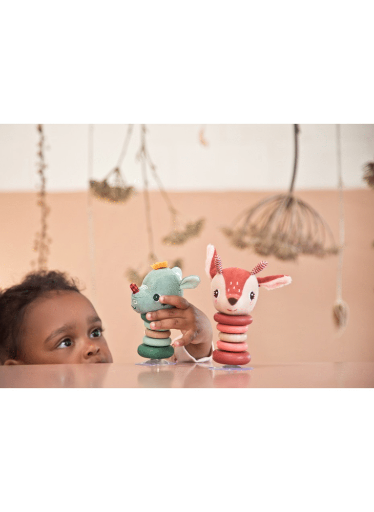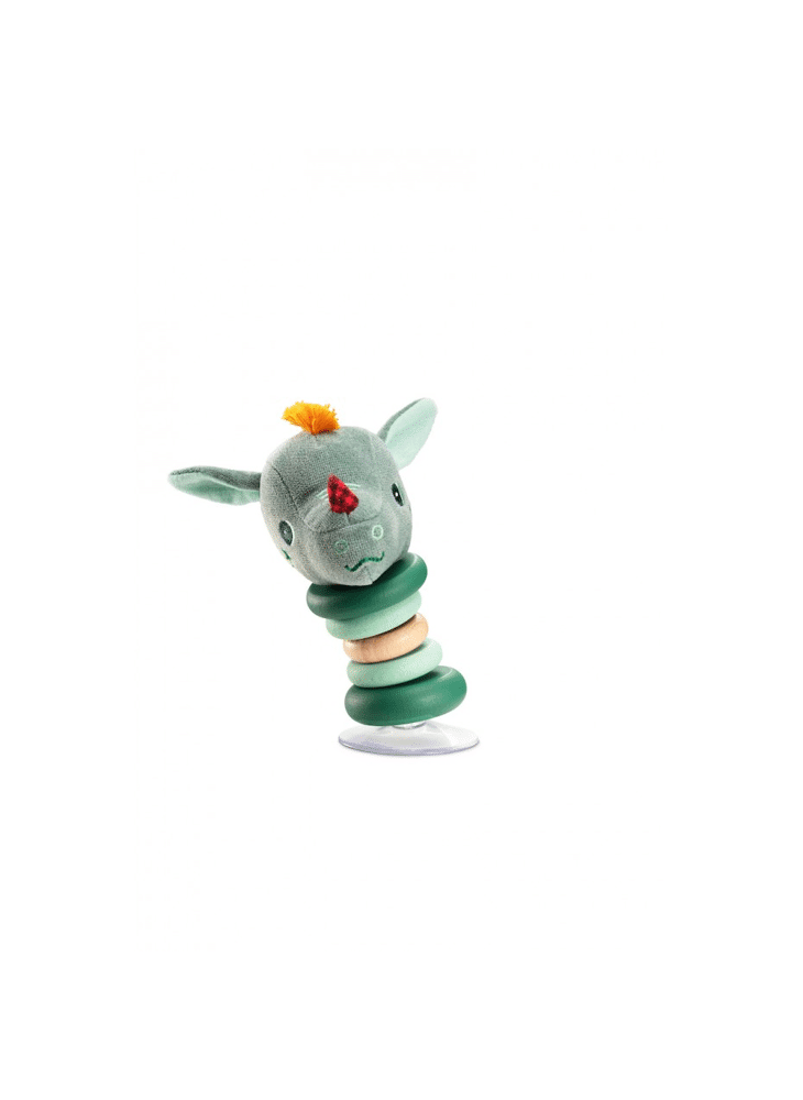 Deze rammelaar swingt vrolijk heen en weer bij het minste duwtje. Dankzij het zuignapje blijft hij stevig rechtstaan en kan je hem overal vasthechten.
