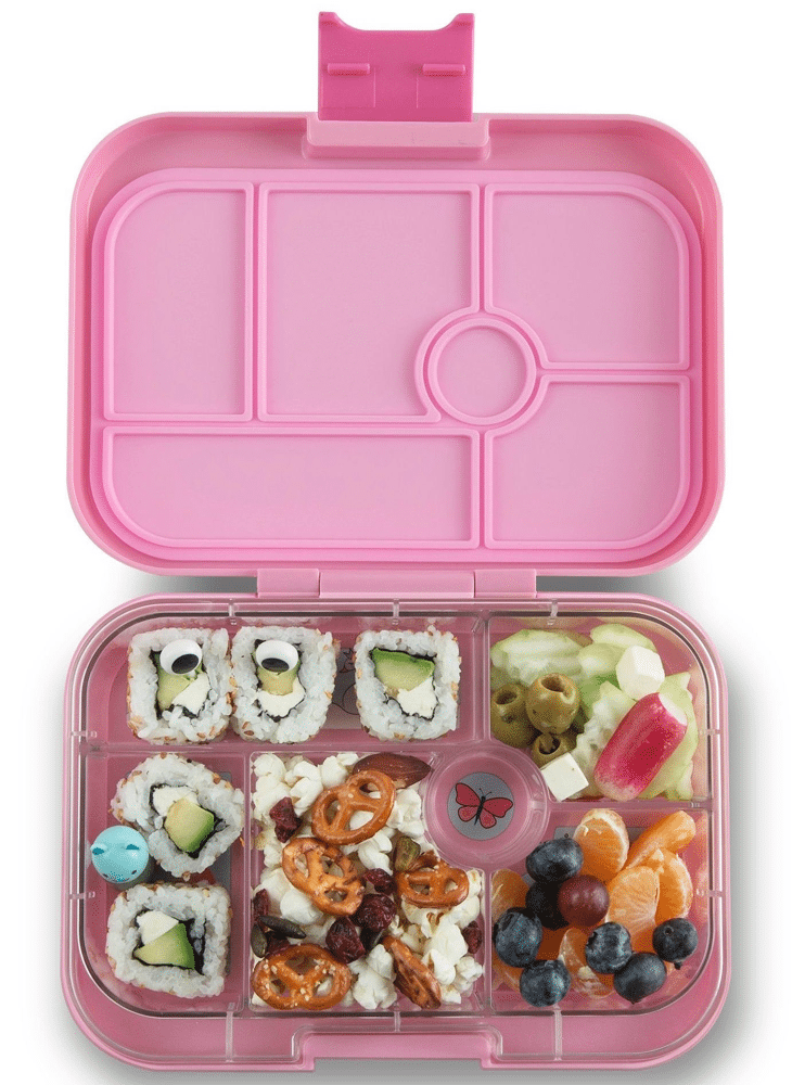 Yumbox Original bento lunchbox 6-sections is lekvrij vanwege de siliconen afsluiting tussen de compartimenten en heeft een tray met 6 secties. Het is geschikt voor sandwiches, fruit, groente, yoghurt etc. en heeft een klein rond compartiment voor nootjes of een dipsaus.