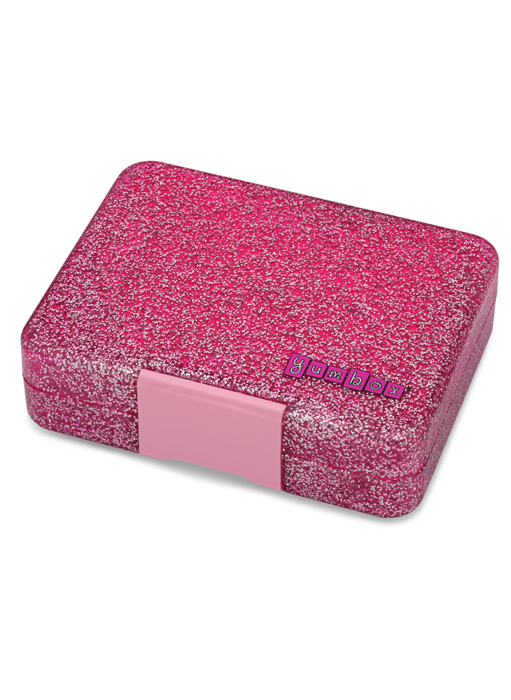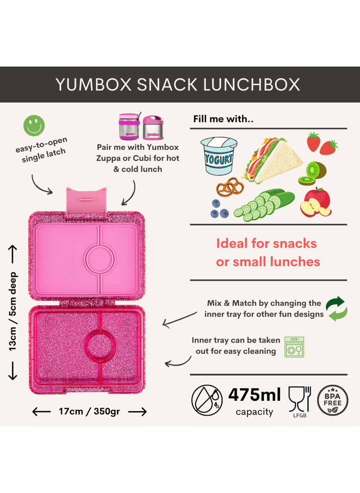 - Product: Yumbox Snack - Lekvrije Bento Lunchbox - 3 vakken - Sparkel Roze Glitter / Roze clear tray
