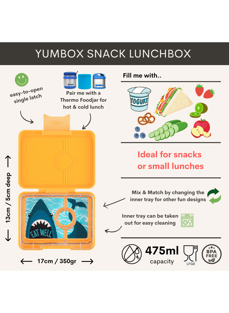 Yumbox Snack - Lekvrije Bento Lunchbox - 3 vakken - Yoyo Yellow / Shark